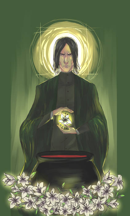 Pomyslela som si, že sa trochu pohrajem s myšlienkou krásy – vo fanfiction často vidíme, ako Severus odrazu zázračne opeknie, a to je nakoniec aj dôvodom, prečo sa doňho Harry zaľúbi. Ale zatiaľ čo skutočnosť je taká, že Alan Rickman je zlatý, Severus Snape nie je. Prinajlepšom je temný a záhadný – dokonca až distingvovaný. Ale pekný nikdy nebude.